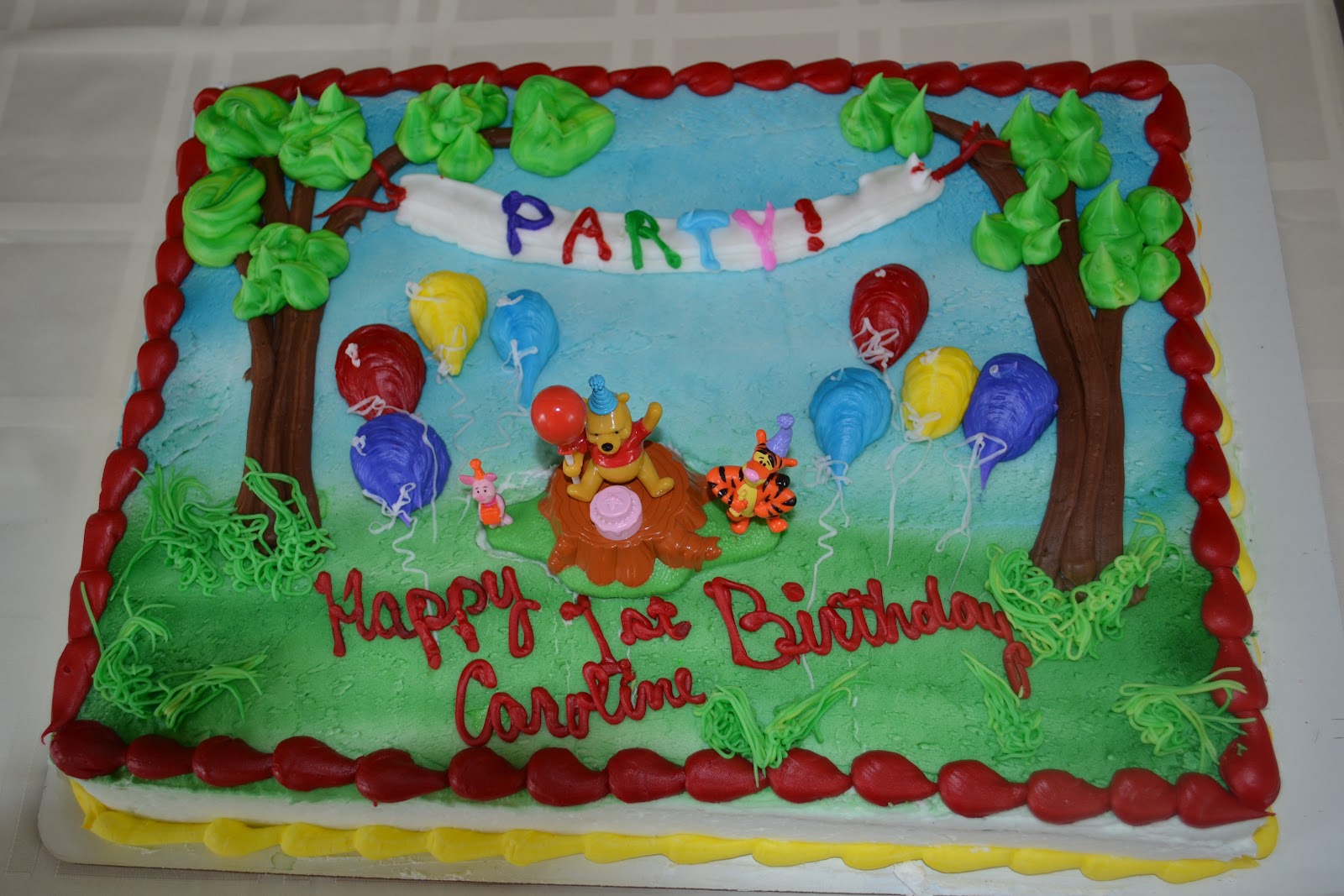 This past weekend we had Carrie's first birthday party celebration. Surrounded by family and friends, my beautiful little girl had a great time. Winnie the Pooh was all over the place and we played "Pin the Hunny Jar on the Pooh Bear". She opened tons of great gifts from those who her including a wagon, a sand box, a bead maze, blocks, books, stuffed animals, and lots of fun things to play with outside this summer. And the cake...she looooved the icing. Not so much the actual cake (she spit it out) but she loved the icing. We stripped her down and she dove in but did so in a relatively neat fashion. I only cried when everyone sang Happy Birthday (we had to do it twice, that's my bad). I can't believe a year has come and gone. All I can think about was 8:44am on Thursday, April 21st these days. I can't wait to see what the next year has in store...but at the same time, it doesn't have to come so damn quickly. :-)